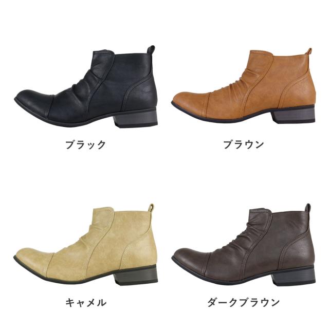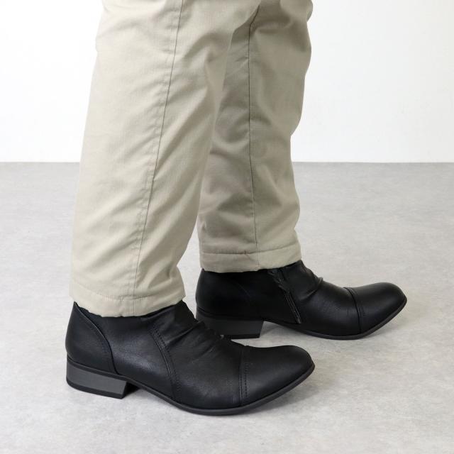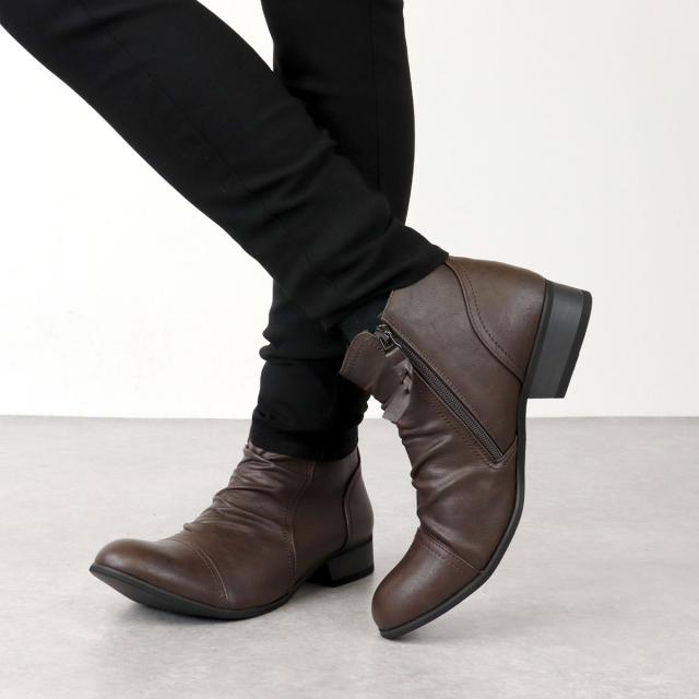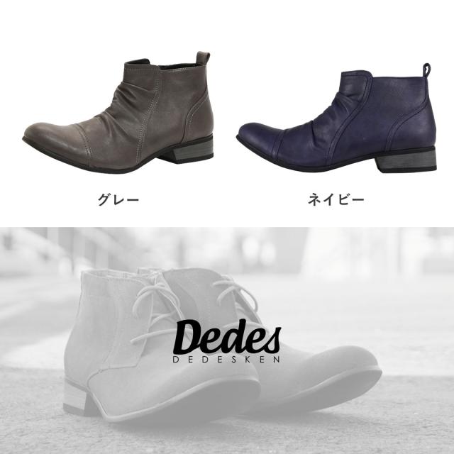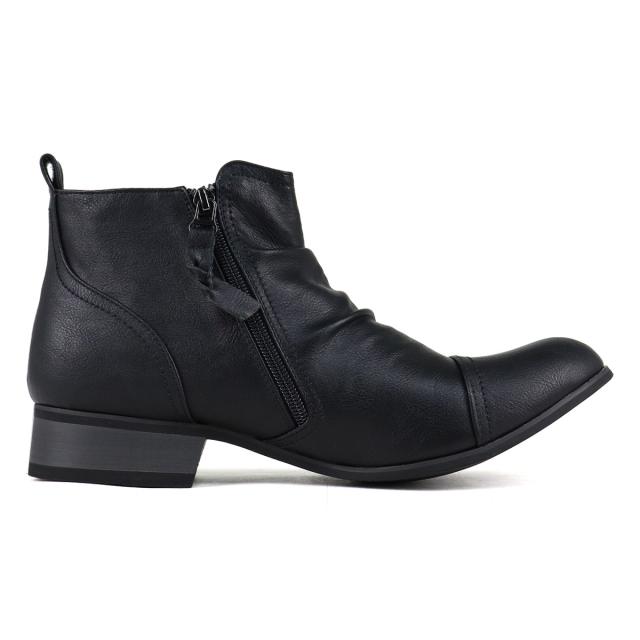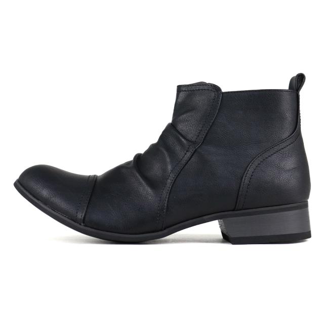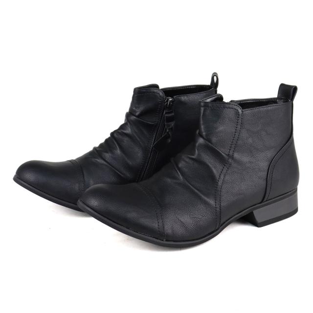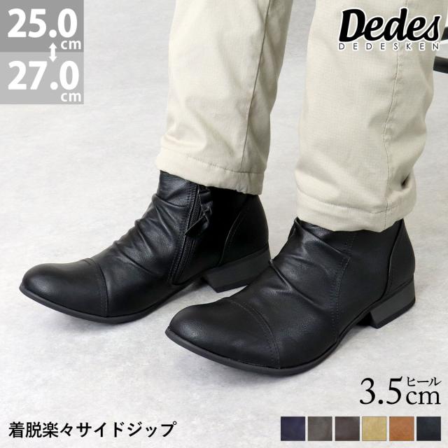 ショートブーツ エンジニアブーツ メンズ ドレープ サイドジップ PUレザー カジュアル 3.5cmヒール No.5156 25.0cm-27.0cm 黒 ブラック Dedes デデス