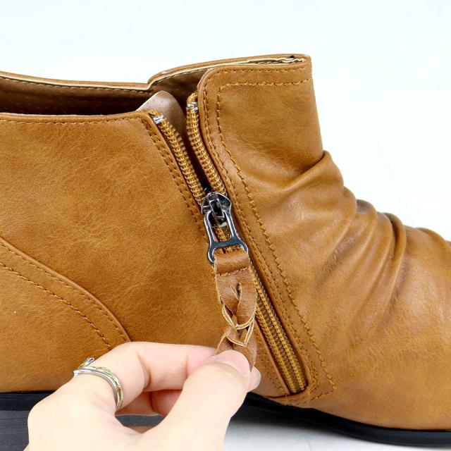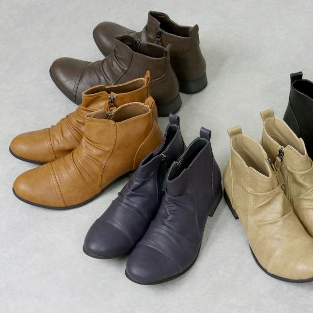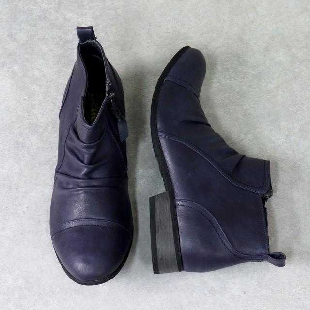 リアルな質感と色ムラのある素材が、本物の革靴のような印象を与えるショートブーツ。