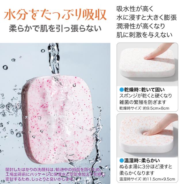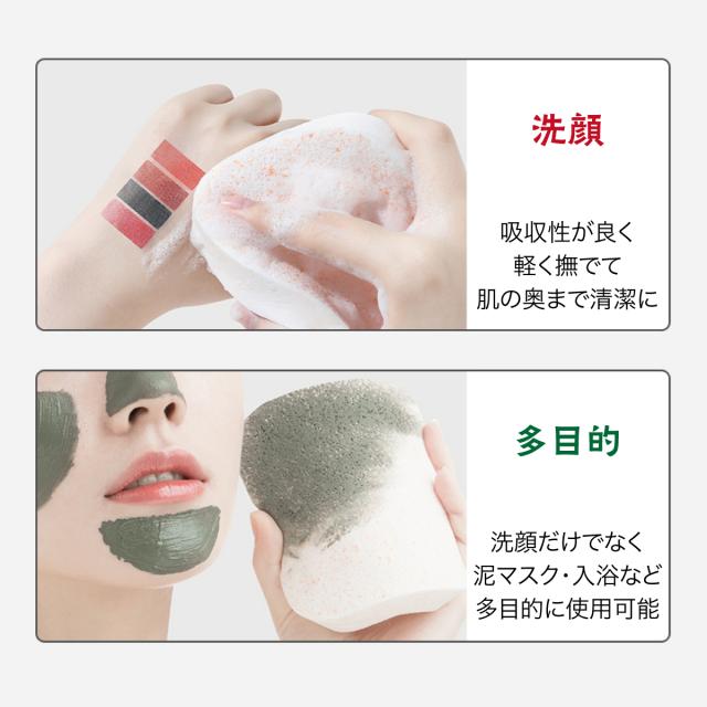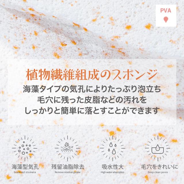 【植物繊維組成のスポンジ】海藻タイプの気孔によりたっぷり泡立ち、毛穴に残った皮脂などの汚れをしっかりと簡単に落とすことができます。