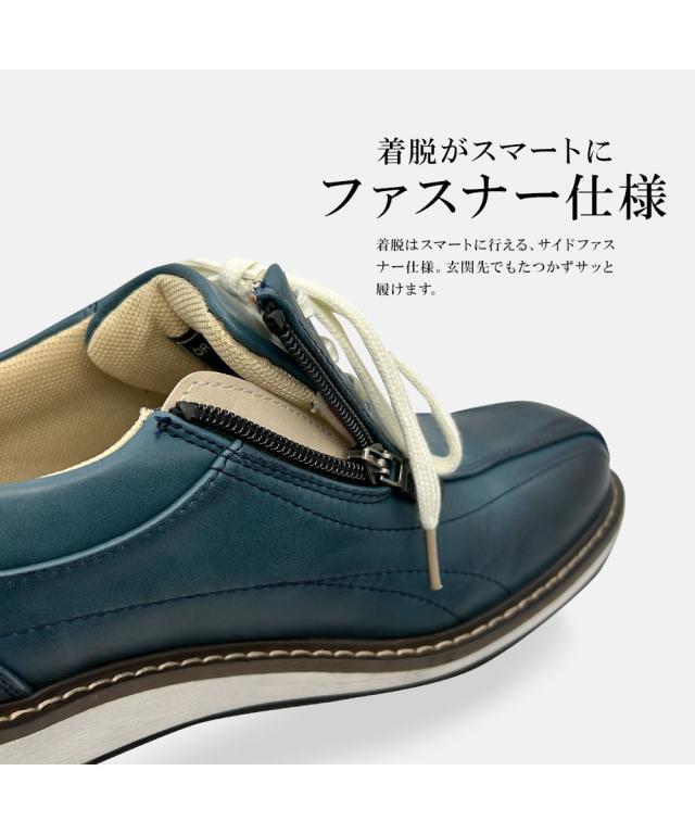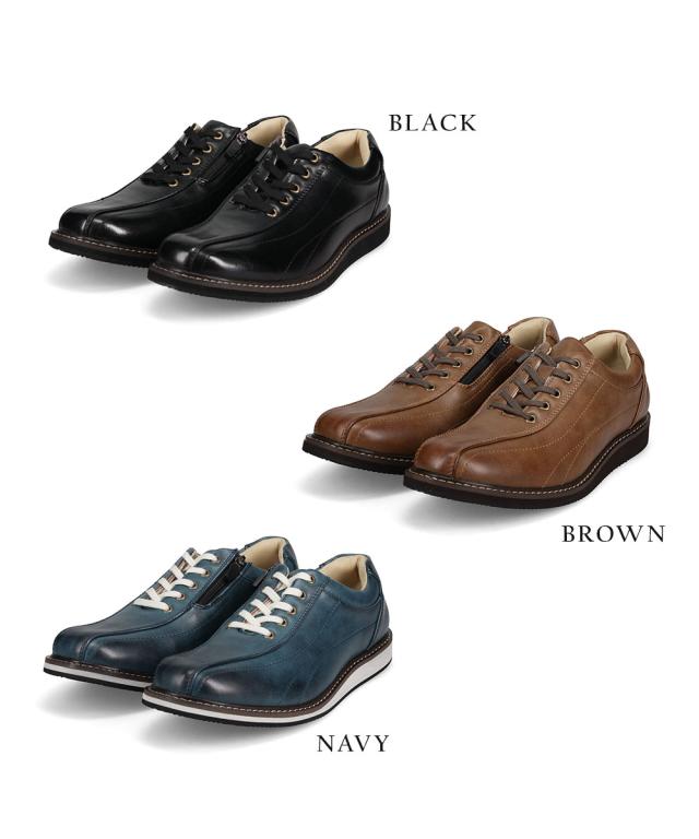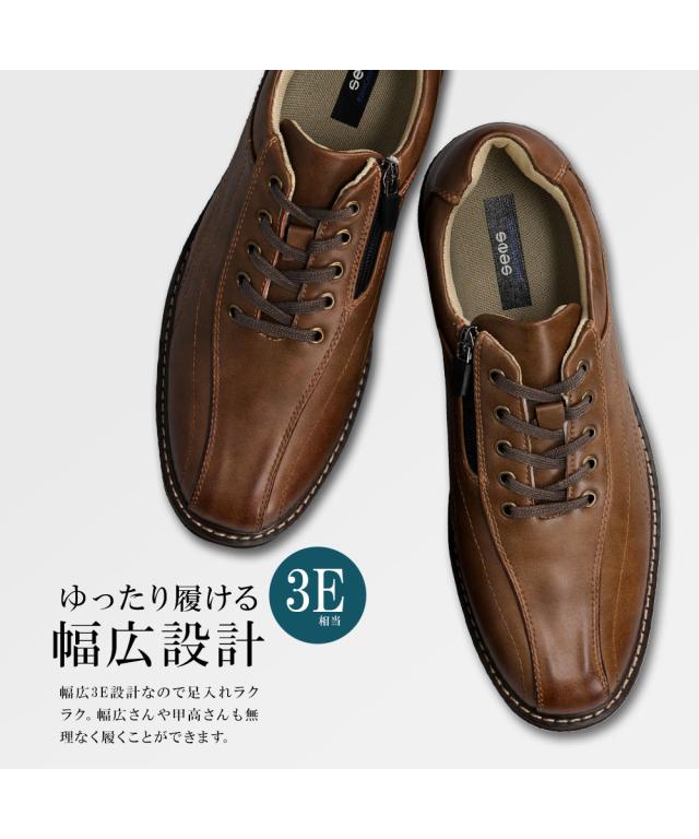 カジュアルシューズ メンズ ビジネスシューズ 走れる 幅広 3e ビジカジシューズ ウォーキング シューズ 防水 ウォータープルーフ 防滑 衝撃吸収 屈曲 サイドファスナー ジッパー 黒 ブラック 紺 ネイビー ブラウン 紳士靴 男性用 アンティーク加工 SENS センス 2112