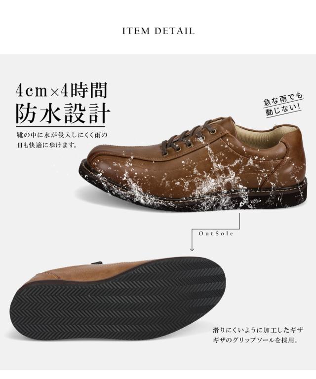 4cm×4時間防水仕様で靴の中に水が侵入しにくく雨の日も快適に歩けます。