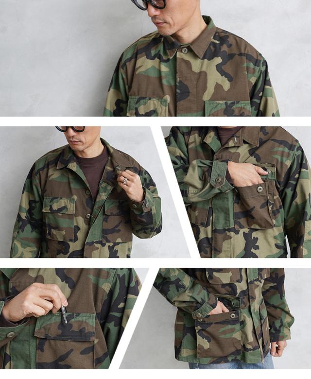 実物 新品 デッドストック 米軍 BDU WOODLAND CAMO ジャケット 中期型 ノンリップ【Cx】【I】|ミリタリー アウター メンズ レディース 迷彩 カモ柄 カモフラ ウッドランド アメリカ軍 軍放出品 薄手 おしゃれ