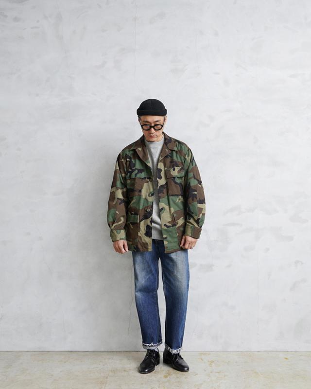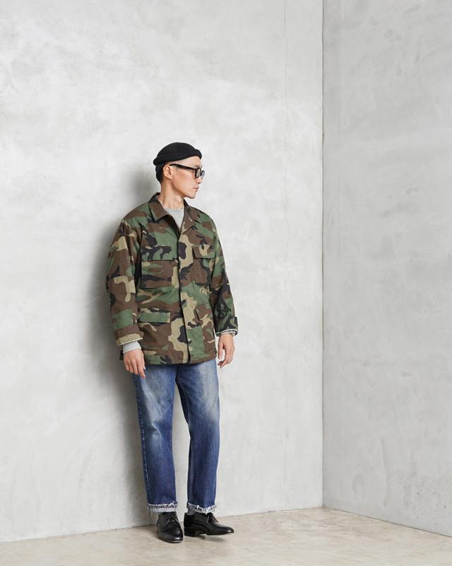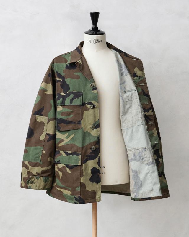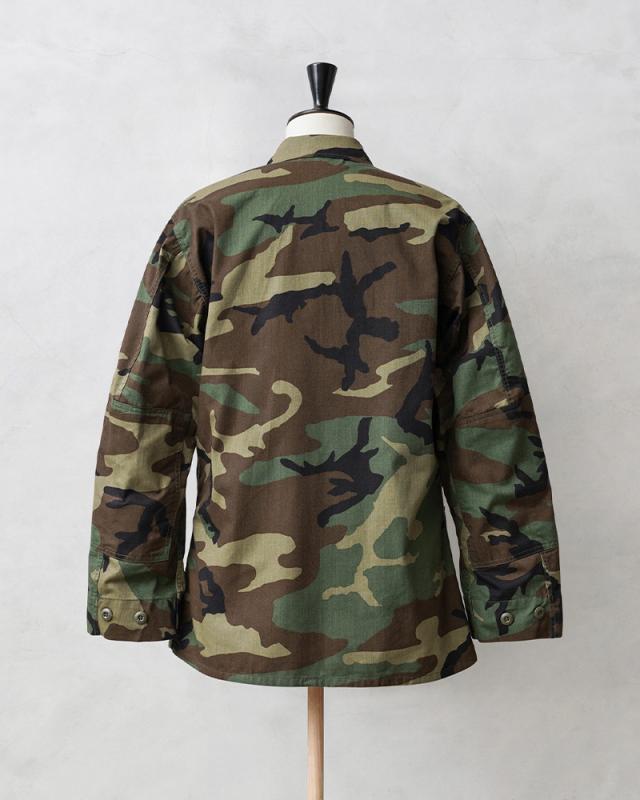 1981年より約30年以上にわたり全米軍で使用され、米海兵隊では2005年、米陸軍では2008年、米空軍では2011年、米海軍では2012年まで使用されたウッドランドカモ柄のBDU(野戦服)です。その後もアメリカ陸軍特殊部隊のグリーンベレーではウッドランドのBDUジャケットが限定で継続使用されていました。こちらの後期型の特徴としては、1995年以降に生産されたモデルで、胸ポケットとウエスト部分のポケットのマチが外側に設けられており、襟の形状が中期型以降は小さくなり、袖口の調節用タブは前期、中期、後期になるにつれて幅広で短い形状へと変更されました。米軍のアイテムとして代表的なBDUジャケットですが、近年放出が少なくなり、年々希少価値が上がっており、入手することが非常に困難になってきたアイテムの1つです!そんな希少アイテムが今回は新品未使用デッドストックというスペシャルなコンディションでの入荷です!お見逃しなく!着込んでいただくことにより様々な表情を見せてくれる1枚です。