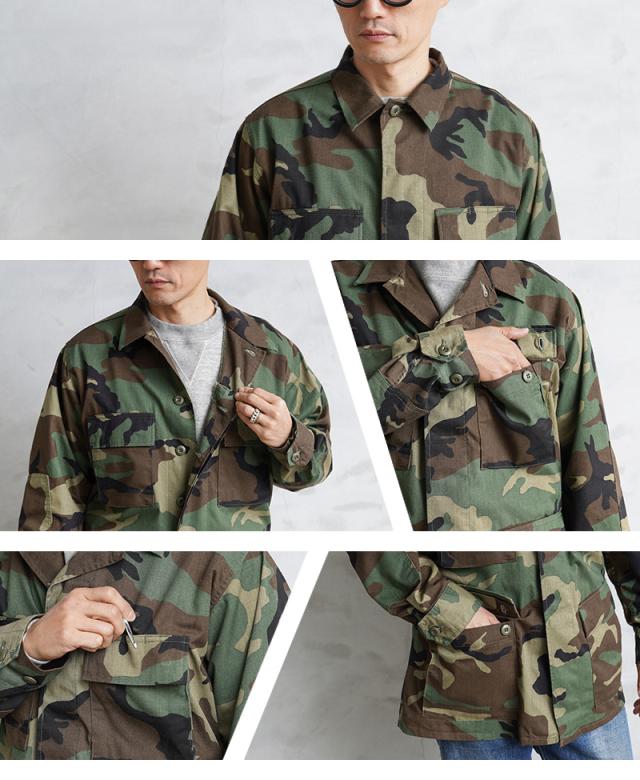 実物 新品 デッドストック 米軍 BDU WOODLAND CAMO ジャケット 後期型 ノンリップ【Cx】【I】|ミリタリー アウター メンズ レディース 迷彩 カモ柄 カモフラ ウッドランド アメリカ軍 軍放出品 薄手 おしゃれ