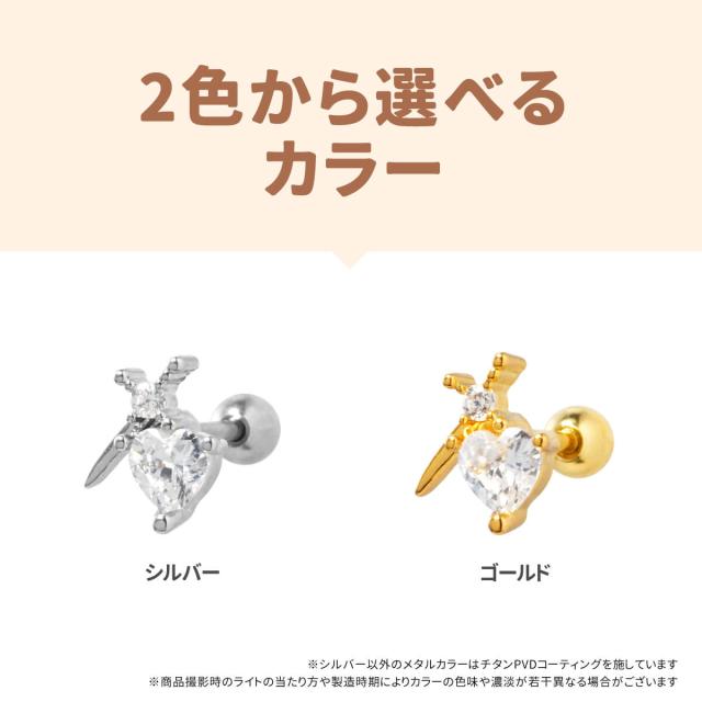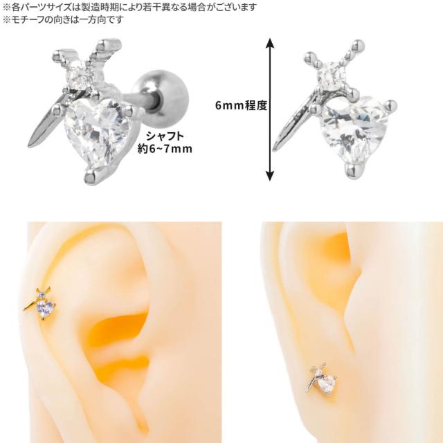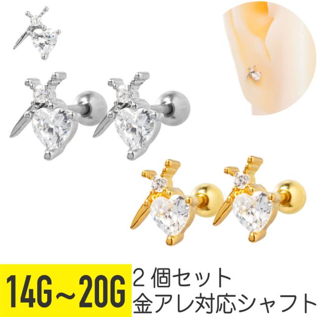 2個セット ハート ソード ジュエル ストレートバーベル 14G 16G 18G 20G ステンレス ヘリックス アウターコンク 軟骨ピアス ボディピアス