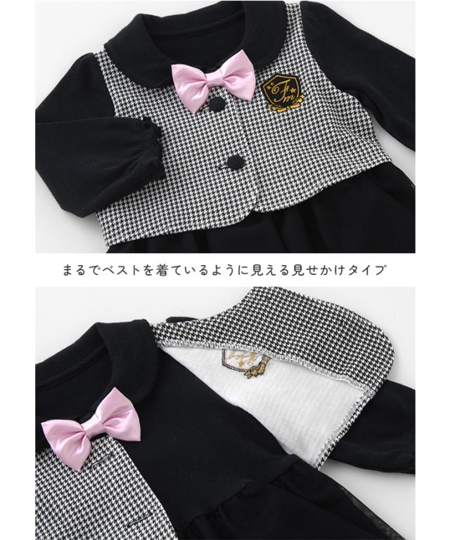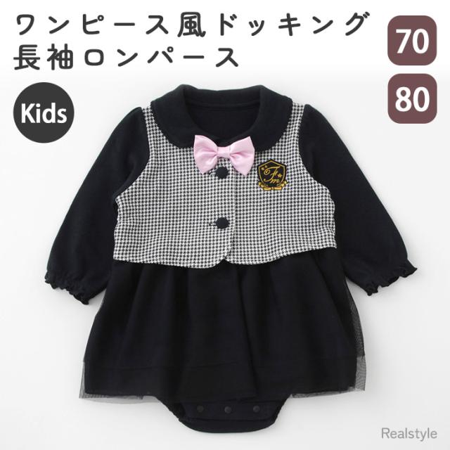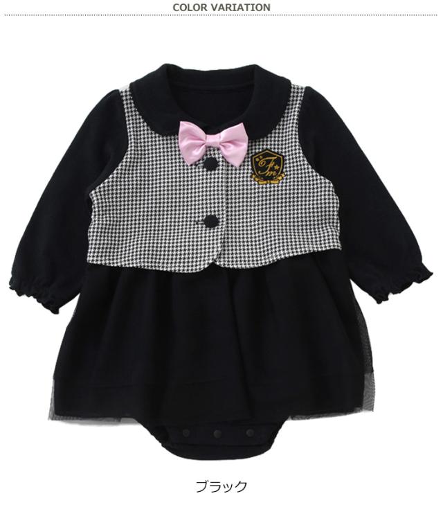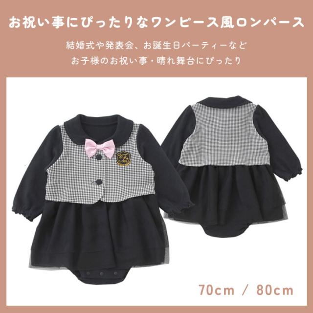 新作 ロンパース カバーオール 新生児 70 80 長袖 女の子 赤ちゃん ベビー 七五三 結婚式 ワンピース風 リボン付き ギフト プレゼント
