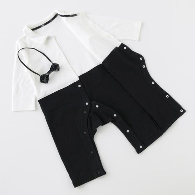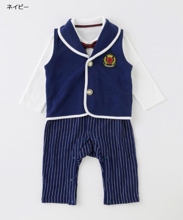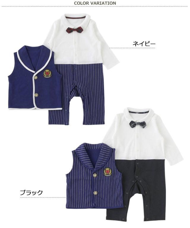 新作 ロンパース カバーオール 新生児 70 80 長袖 男の子 赤ちゃん ベビー 七五三 結婚式 フォーマル ベスト付き 2点セット 蝶ネクタイ
