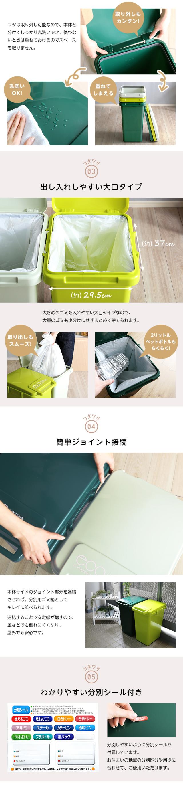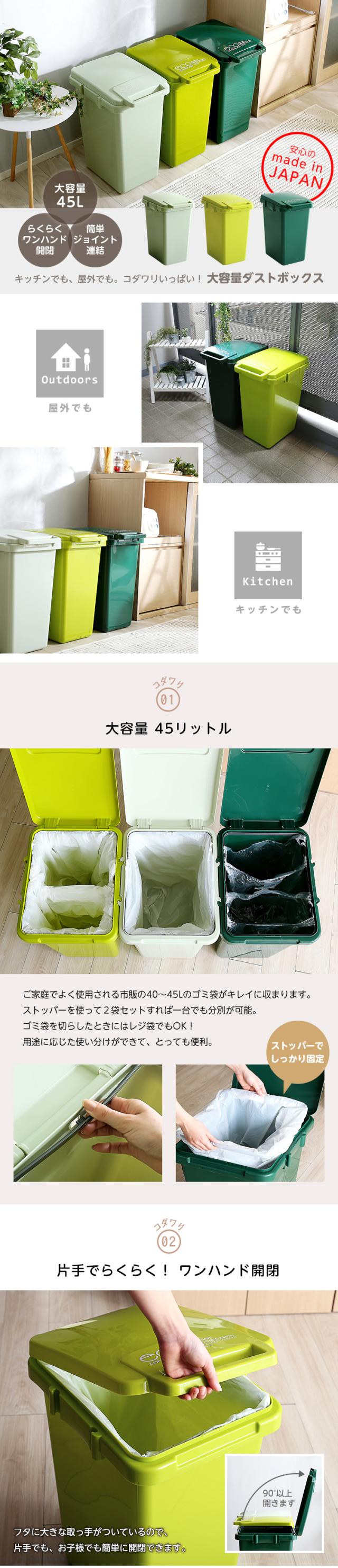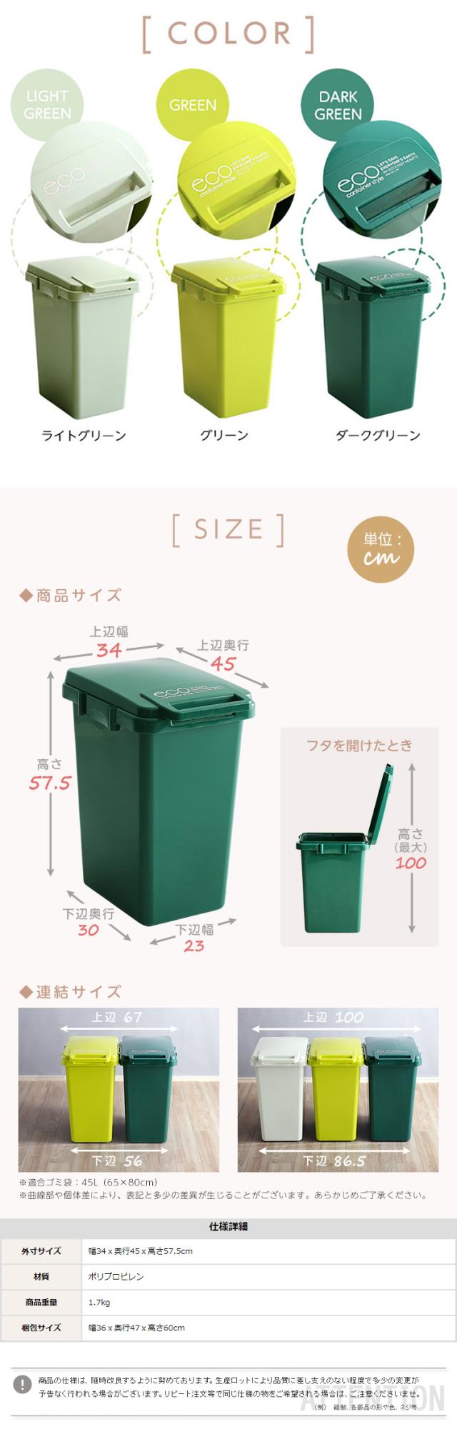 ECGS-DB ダストボックス 1台単品 グリーン ゴミ箱 ごみ箱 安心の日本製 ごみばこ スリム 店舗 用フタ付き 45リットル おしゃれ