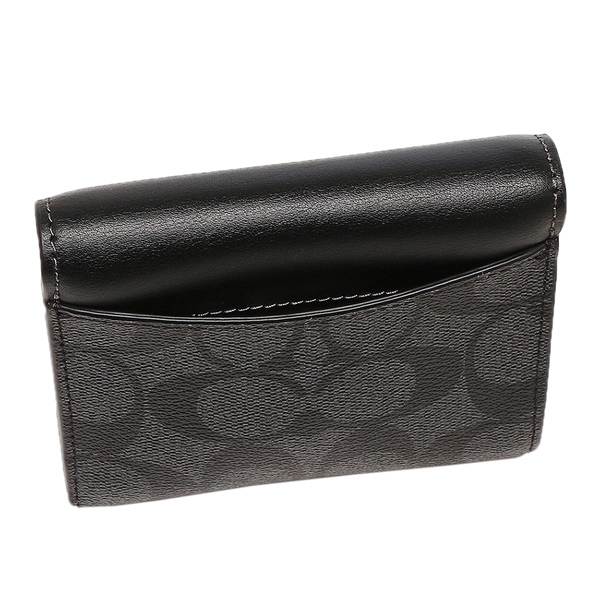 コーチ アウトレット 三つ折り財布 シグネチャー ミニ財布 グレー ブラック レディース COACH CE930 SVTSQ