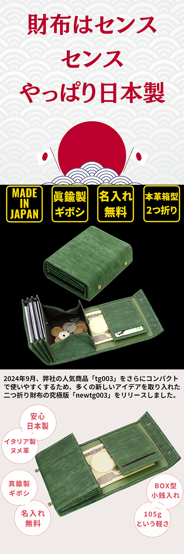 二つ折り財布 メンズ 本革 日本製 縦型 ブランド 箱型 小銭入れあり 和柄 財布 二つ折り 三つ折り 名入れ無料 コンパクト 使いやすい 緑 ネイビー p30 foglie mikawa