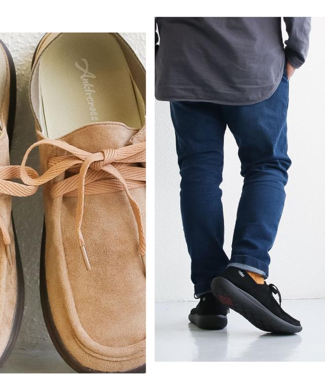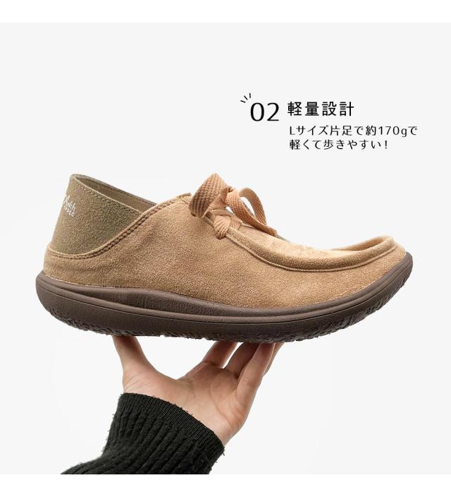 アッパーには柔らかく手触りの良いスエード調素材を使用。