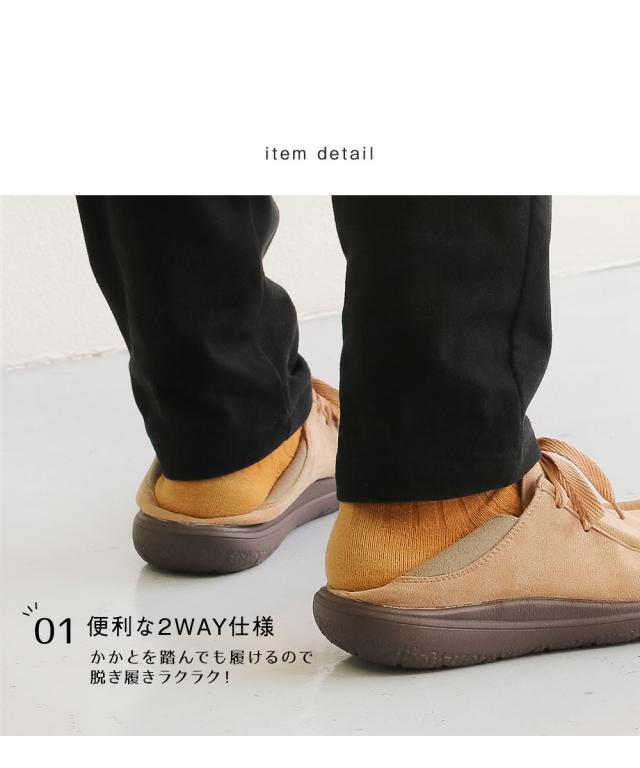 かかとを踏んでも履ける2way仕様のモカシンシューズ。