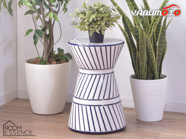 東谷 スツール ホワイト φ30×H45 CLY-21A 陶器製 オブジェ 花台 屋外 屋内 トライバル シンプル ポップ 個性的 メーカー直送 送料無料