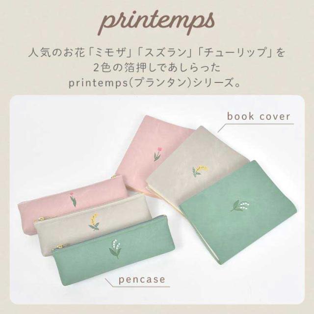 人気のお花「ミモザ」「スズラン」「チューリップ」を2色の箔押しであしらった、 printemps(プランタン)シリーズ。 学生から大人まで使いやすいシンプルな箔押しデザインのブックカバー。 幅105×縦157×厚さ25mmまでの文庫本に対応。 背幅(本の厚み)に合わせて折り返しを調節できます。