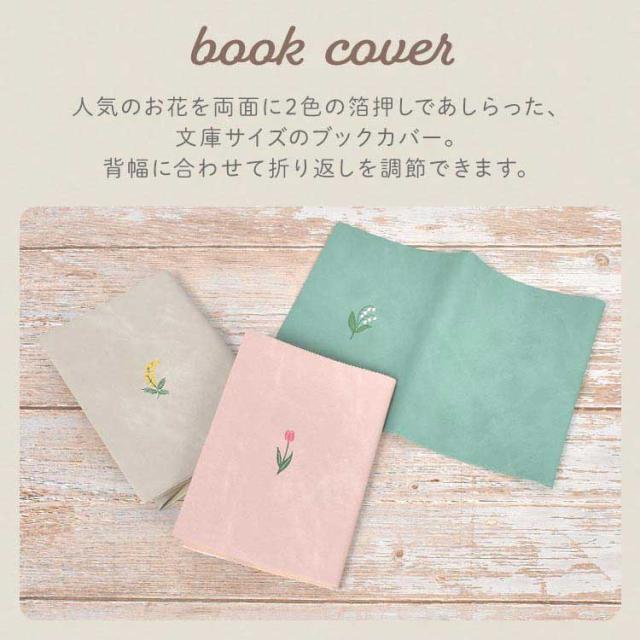 ブックカバー 文庫 a6 フリーサイズ 文庫本カバー 日本製 ワンポイント 箔押し 本革風 PVC 文庫本 サイズ 花 柄 ミモザ スズラン チューリップ おしゃれ かわいい シンプル グレー ピンク ミント 大人 学生 通勤 通学 読書 女性 母の日 新生活 プチ ギフト 誕生日 プレゼント
