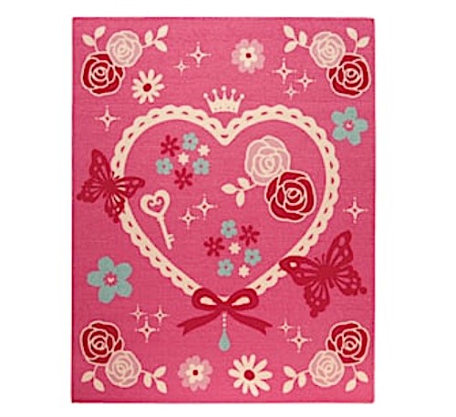 デスクカーペット 女の子 約110×133cm ピンク ハート柄 平織 「キャリー」 【北海道・沖縄・離島 送料別】