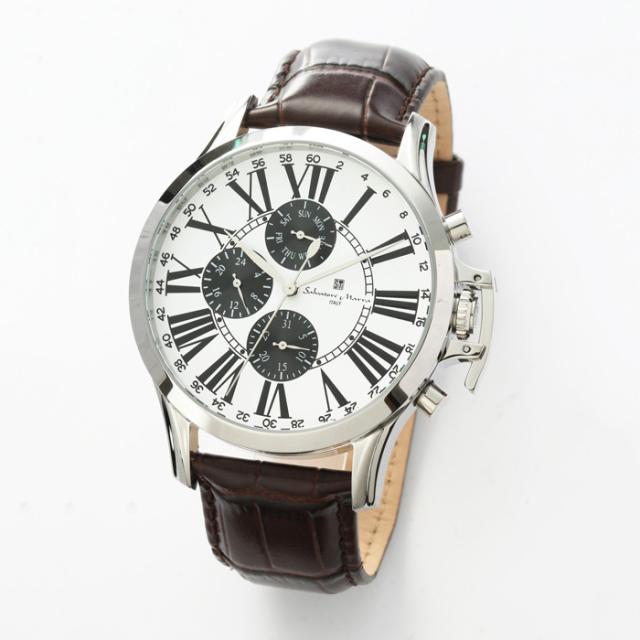 Salvatore Marra サルバトーレマーラ メンズ 腕時計 マルチファンクション SM23101-SSWH メンズ腕時計 イタリアブランド レザーベルト 3気圧防水