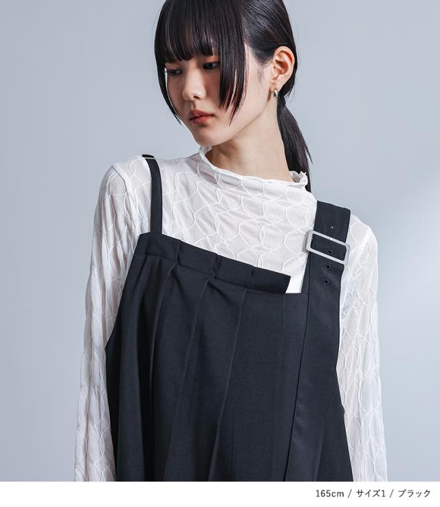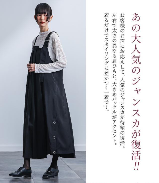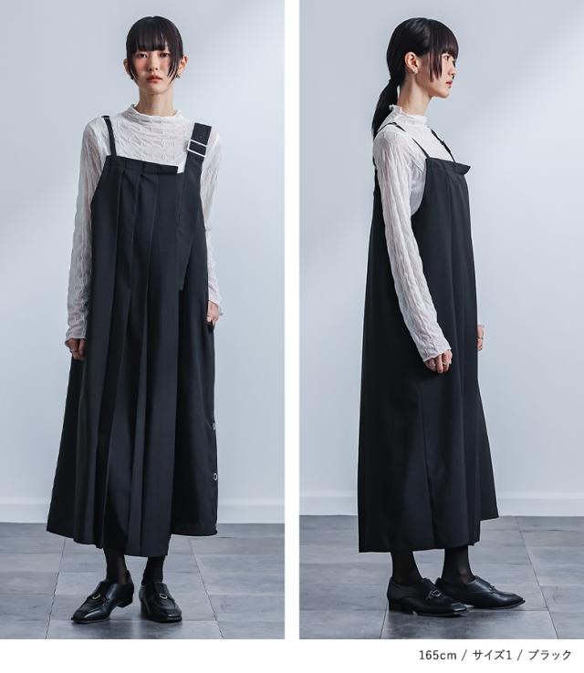 『kOhAKUアシメプリーツジャンパースカート』 【メール便不可】【20】[ジャンパースカート ロング レディース ワンピース ノースリーブ ジャンスカ アシンメトリー レイヤード プリーツ 裾スリット アレンジ可能 調節可能 裏地付き 春 秋 冬]
