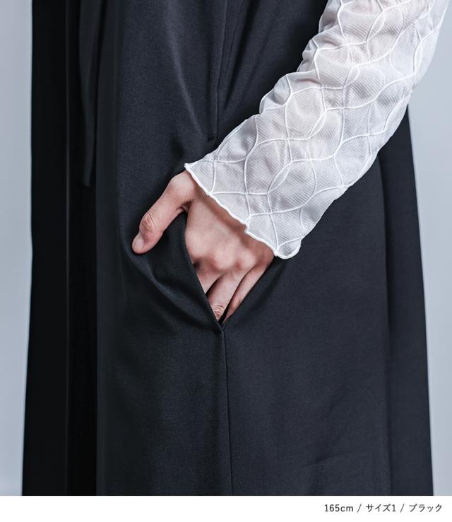 | staff:H/156.7cm B98 W84 H107 【普段着用】 トップス: L/LL ボトムス: L/LL | 【1(M〜L)】 アジャスターを最長に調節して ◆着丈(短):くるぶし上10cm位 ◆着丈(長):くるぶし上3cm位 【2(LL〜3L)】 アジャスターを真ん中に調節して ◆着丈(短):くるぶし上5cm位 ◆着丈(長):くるぶしが隠れる位 1(M〜L)は、薄手のトップスの上に着て、程よいゆとりをもって着られましたが、バスト周りにはあまり余裕がありませんでした。2(LL〜3L)は、厚手のニットの上にも着られる位ゆったりと着られました。プリーツの縦ラインでスッキリ見えました。私の場合は、2(LL〜3L)を選びます。 |