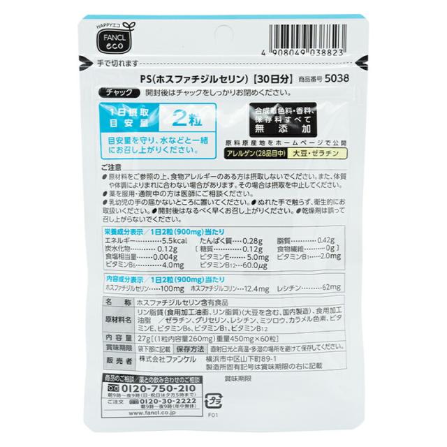 [3個セット]FANCL ファンケル PS(ホスファチジルセリン)30日分 サプリメント 健康食品 ビタミンE レシチン ホスファチジルコリン [ギフトラッピング対応]