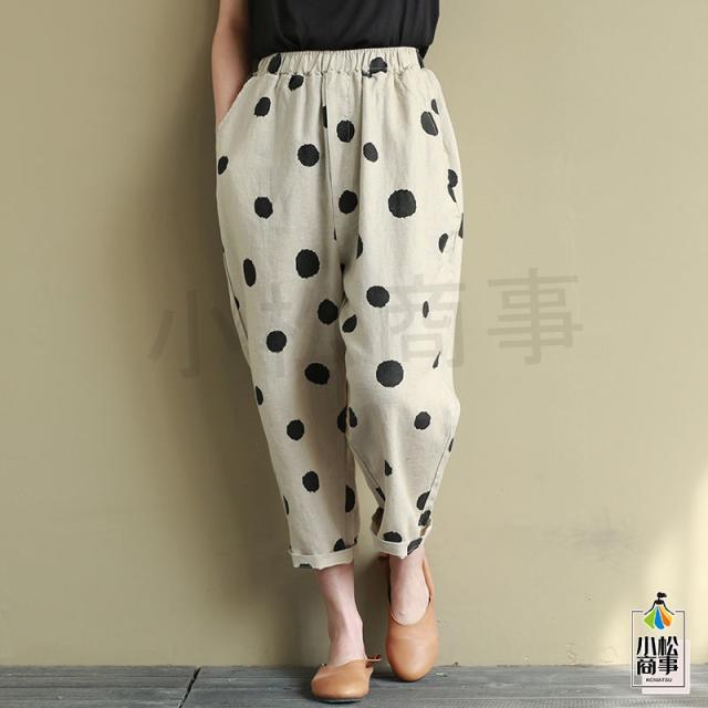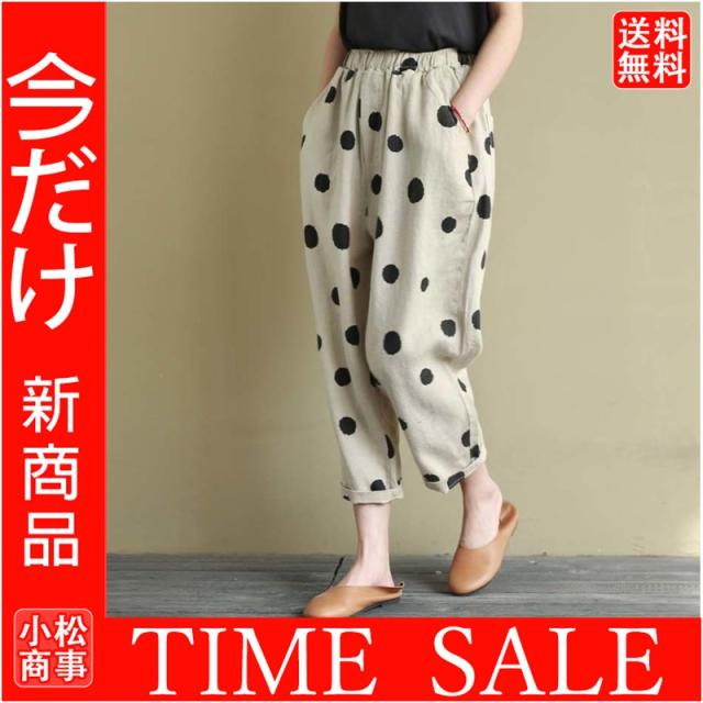 テーパードパンツ ドット レディース ガチョウパンツ 綿麻 ボトムス パンツ 8分丈 ワイドパンツ カジュアルパンツ ゆったり 細身 レトロ 送料無料 母の日