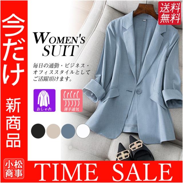 スーツ レディース トップス 七分袖 サマースーツ カジュアル カジュアルスーツ レディーススーツ スキニー 麻 薄手 薄い 着痩せ 一つボタン 夏服 母の日