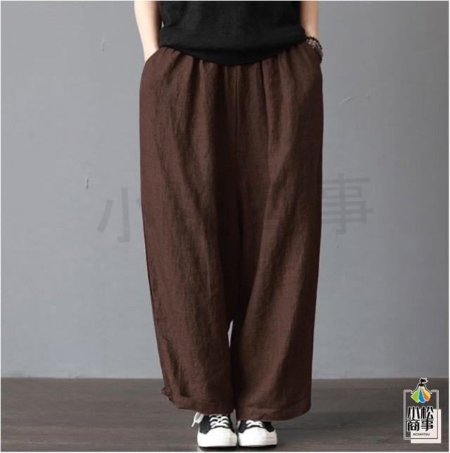 送料無料 ワイドパンツ 綿麻 薄手 レディース ガウチョパンツ 美脚 ポケット 無地 バルーン 着痩 せスカンツ 春夏 ファッション 母の日