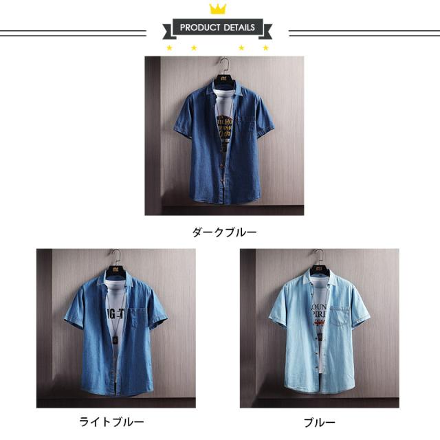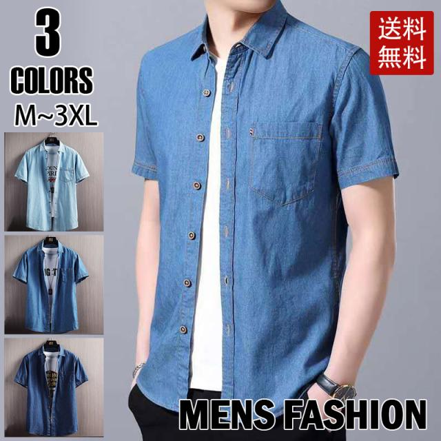 デニムシャツ メンズ シャツ 半袖 トップス シンプル 大きいサイズ 小さいサイズ カジュアル シャツ スキニー 無地 デニム 通勤 通学 快適 父の日 プレゼント