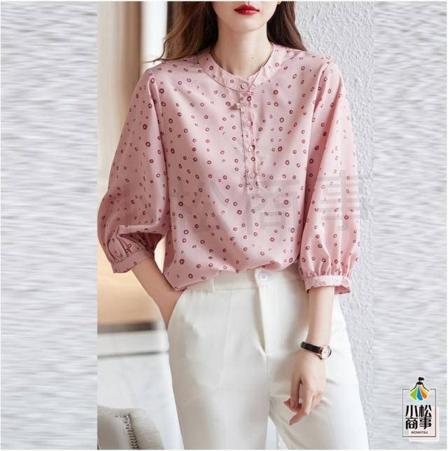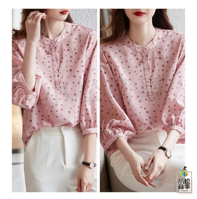 シフォン ブラウス レディース 七分袖 トップス スーツインナー 通勤 オフィス 防シワ 小さいサイズ カジュアル 水玉 旅行 きれいめ 涼しい 夏服 母の日
