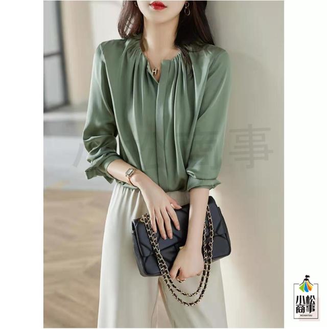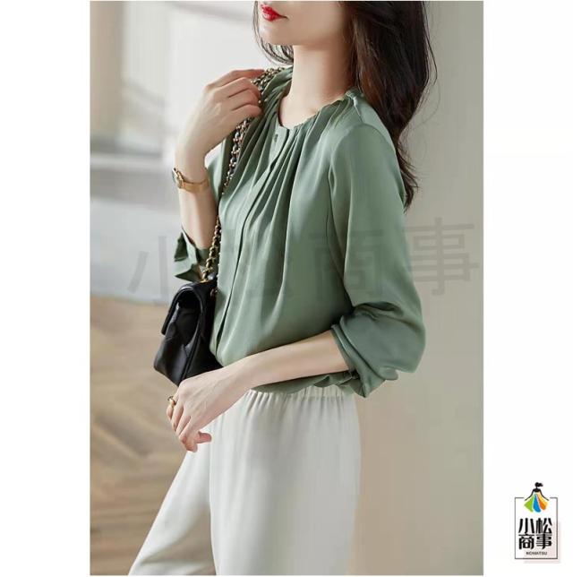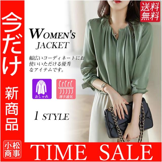 シフォン ブラウス レディース 七分袖 トップス スーツインナー 通勤 オフィス 防シワ 大人 カジュアル ゆったり ふんわり グリーン きれいめ 母の日
