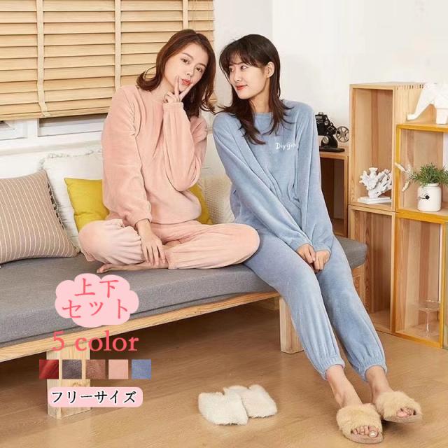 赤字販売 パジャマ ルームウェア レディース 上下セット ラウンドネック モコモコ 長袖 暖かい 上下セット 可愛い 厚手 部屋着 秋冬 寝巻き 母の日