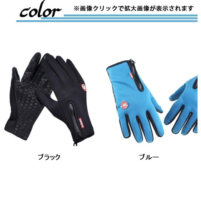 商品詳細:カラー:/ブラック/ブルー/サイズ:/S/M/L/XL【商品説明】ウェットスーツのような材質のスマホ対応 防寒・防風グローブです。人差し指と親指がスマホ対応となっておりますので、グローブを脱がずにスマホが操作できます。グローブの内側は暖かい裏起毛です。冬の自転車・ウォーキング・通勤・アウトドアなど幅広くお使いいただけます。撥水加工を施した素材と手首のファスナーにより、しっかりと手にフィットし風を通しません。【素材】ポリエステル、その他【サイズ】S:全長:(約)22.5cm、手のひら幅:(約)9cm M:全長:(約)23cm、手のひら幅:(約)9.5cm L:全長:(約)24cm、手のひら幅:(約)10cm XL:全長:(約)25cm、手のひら幅:(約)10.5cm【生産国】中国【キーワード】手袋 手袋 メンズ アウトドアグローブ 防寒グローブ スポーツグローブ 裏起毛 滑り止め 防寒 防風 防水 撥水 保温 雪 雨 通勤 通学 スポーツ 冬 冬用 男女兼用 ブラック グレー