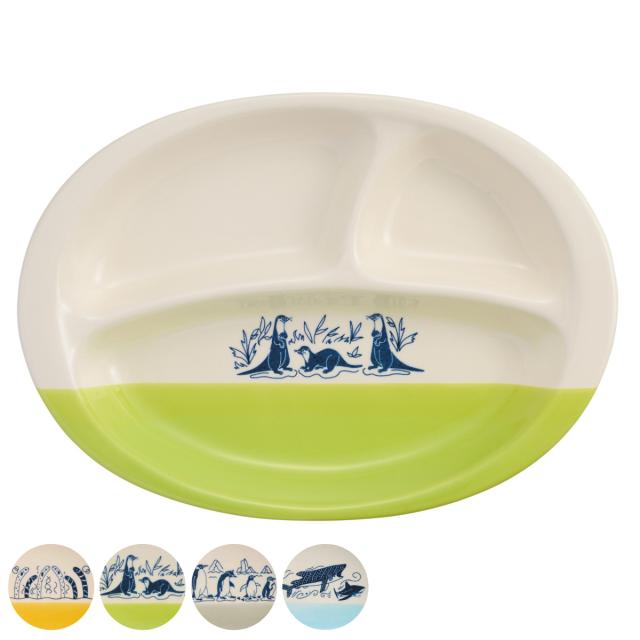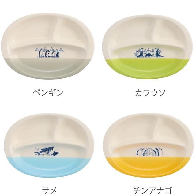 ランチプレート 28.5cm 陶器 ( 食洗機対応 電子レンジ対応 オーブン対応 耐熱皿 動物 アニマル 日本製 ペンギン カワウソ サメ チンアナゴ プレート 仕切り皿 仕切りプレート ラウンド型 丸 陶器製 3つ仕切り おしゃれ かわいい )