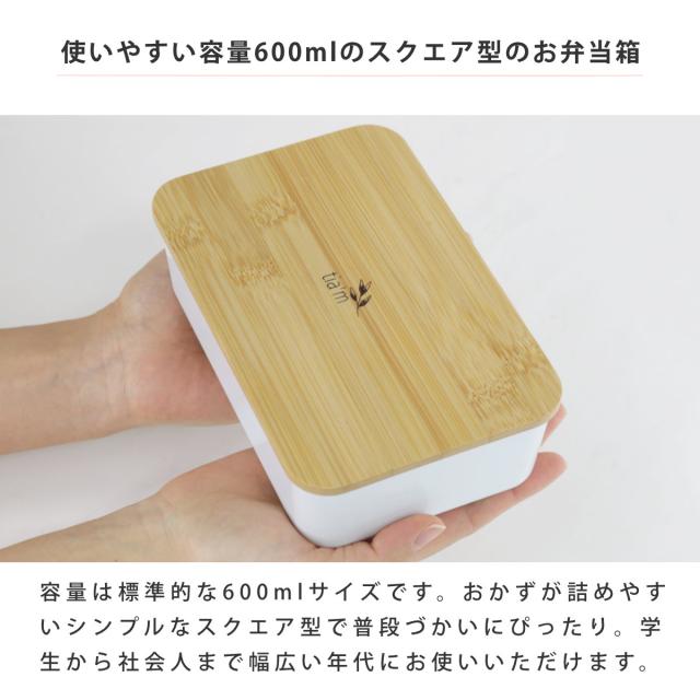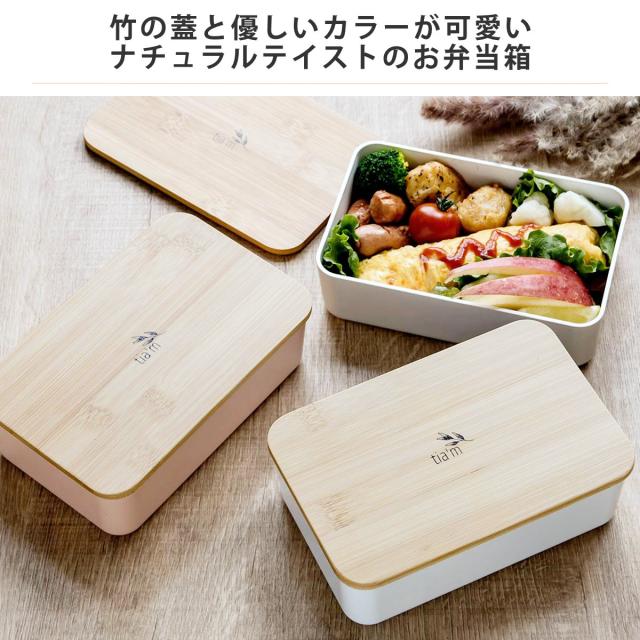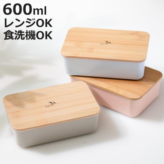 弁当箱 600ml 1段 tiam 抗菌 ( お弁当箱 ランチボックス レンジ対応 食洗機対応 一段 大人 女子 おしゃれ 竹蓋 レンジOK 食洗機OK 弁当 お弁当 ランチベルト付き 女性 )