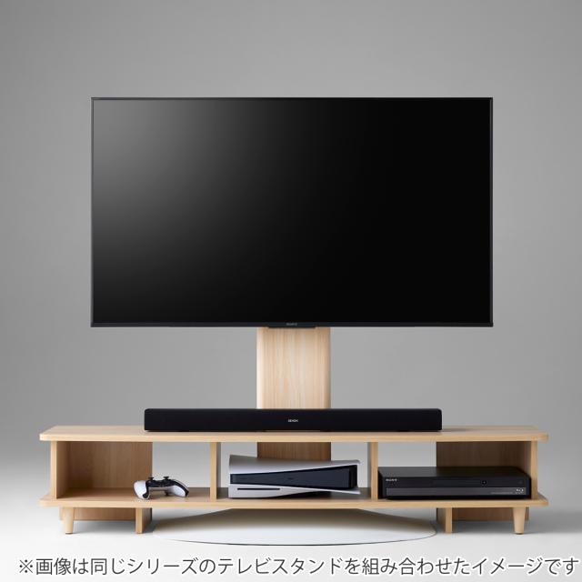 天板の奥側には切り欠きがあり、別売りの壁寄せテレビスタンドの支柱がぴったりフィットします。高さを出したい場合はもちろん、収納力を確保しつつ壁掛け風のスタイルにすることができます。