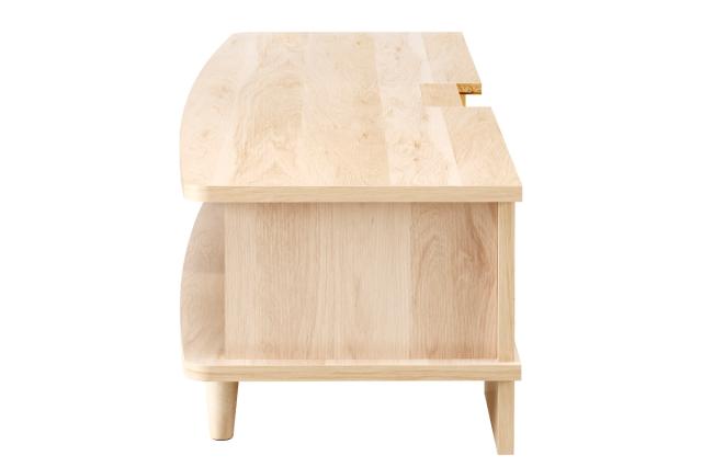 ナチュラルな木目調に加え、前面のラウンド加工と丸脚がお部屋に優しさと温かみを演出します。シンプルなデザインなのでインテリアのテイストを選ばず、どんなお部屋にもスッと馴染んでくれます。