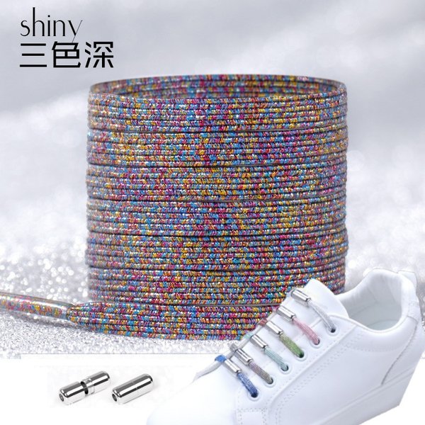 シューレース シャイニー 靴ひも スピンタイプ 【06】 おしゃれ スニーカー ラメ 紐 ゴム紐 伸びる 結ばない くつひも 伸縮