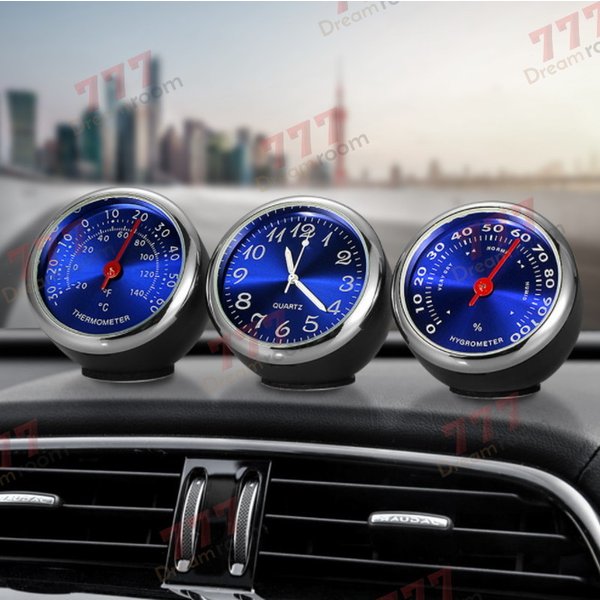 | アナログ 3連メーター風 温度計 湿度計 時計 ブルー マルチ車載 アクセサリー ラグジュアリー 車 インテリア 装飾飾り 自動 車時計 | ||||||||||