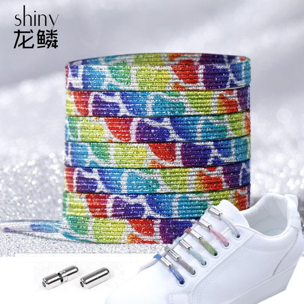 シューレース シャイニー 靴ひも スピンタイプ 【04】 おしゃれ スニーカー ラメ 紐 ゴム紐 伸びる 結ばない くつひも 伸縮