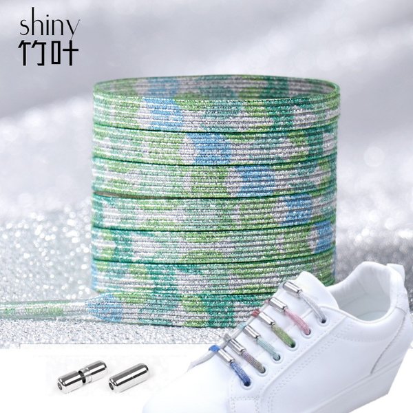 シューレース シャイニー 靴ひも スピンタイプ 【01】 おしゃれ スニーカー ラメ 紐 ゴム紐 伸びる 結ばない くつひも 伸縮
