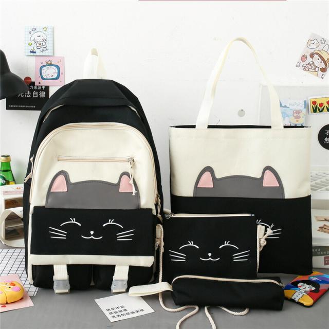 ねこちゃん リュックサック 4点セット キャンバス地 トートバッグ ペンケース ショルダーバッグ KB-008