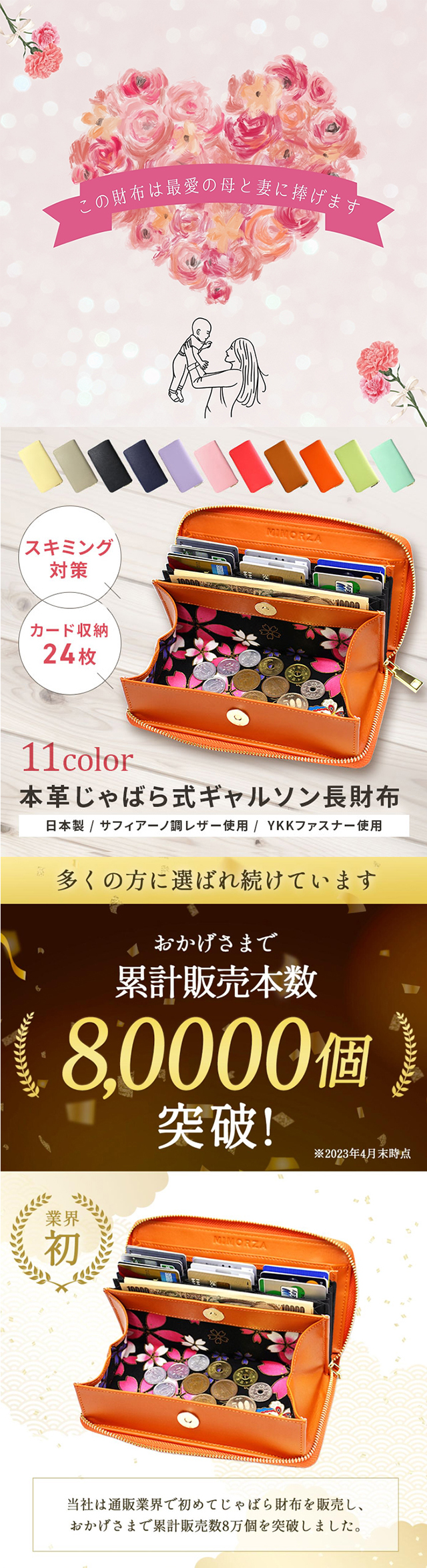 長財布 レディース 本革 日本製 和柄 ギャルソンウォレット 牛革 ラッピング無料 磁気防止 スキミング YKK じゃばら式 カード24枚 大容量 魅革 mikawa