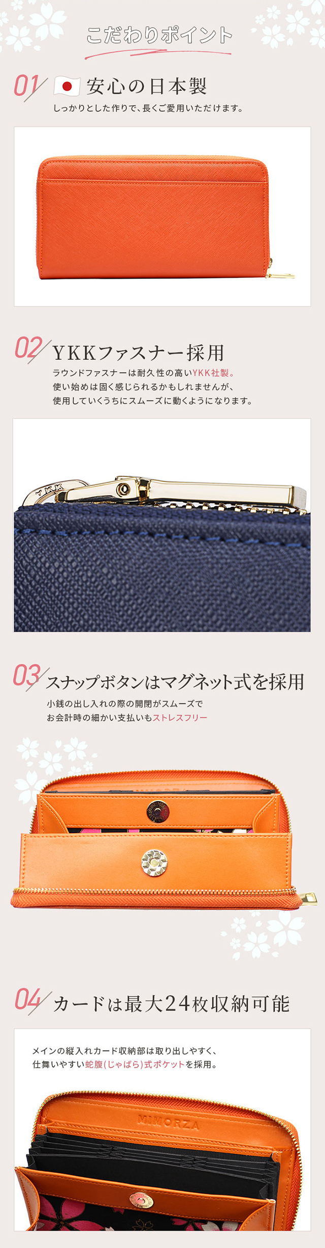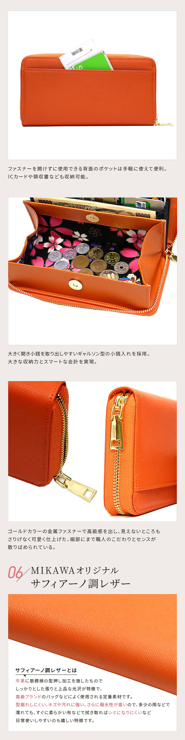 ●魅革(mikawa)最新レディース財布シリーズmimorza。欧米でもとても人気のある革イタリア製サフィアーノレザー使用。和柄生地で令和特別仕様が登場!