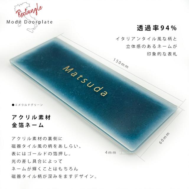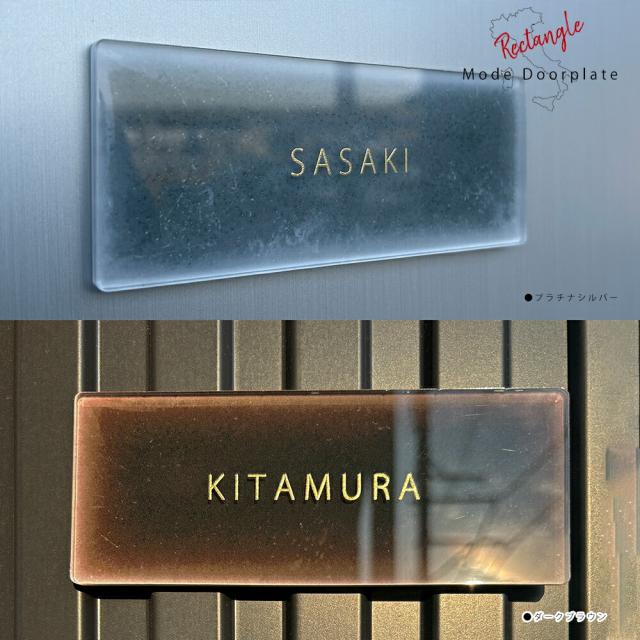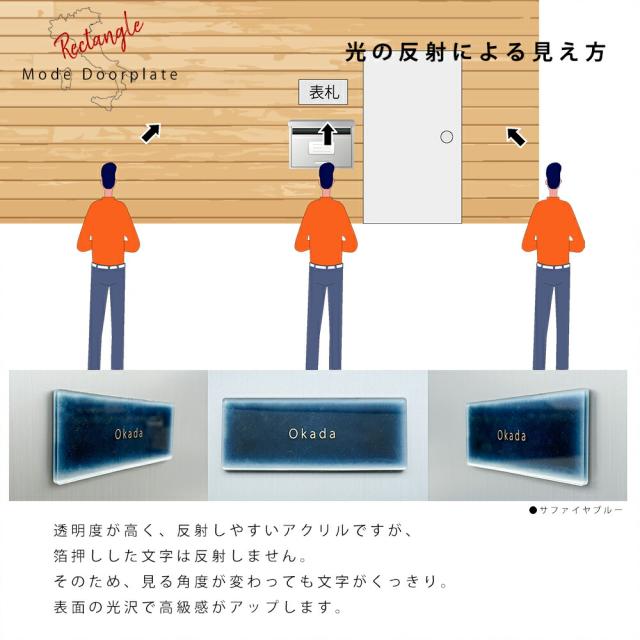 表札 おしゃれ 戸建て 宅配ボックス 郵便ポスト アクリル ドアプレート 長方形 ネームプレート 穴開け不要 工事不要 オシャレ スマート シンプル リッチ 高級感 貼るだけ 軽い 軽量 マンション アパート 賃貸 戸建 両面テープ 接着 箔押し 金箔 Mode Doorplate ゴシック体