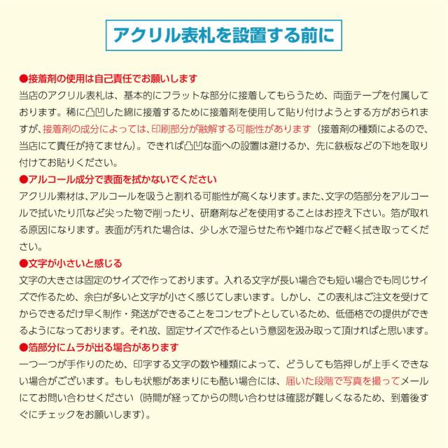 アクリル 表札 賃貸 ポスト 二世帯 門柱 カタカナ 正方形 インターホン 風水 貼り 付け タイプ 貼る キャラクター かっこいい 表札 戸建て おしゃれ 表札 住所 入り 表札 戸建て おしゃれ ネームプレート 玄関 屋外 ひょうさつ ねーむ 会社 会社名 名前 アクリル 安い お洒落 オシャレ おしゃれ かわいい 格好良い シンプル タイル ローマ字 明朝体 番地 家族 プレゼント ギフト 贈り物 福袋 年始 正月 成人式 恵方巻き バレンタイン 新入学 新学期 卒業 新生活 花見 桃の節句 端午の節句 こどもの日 母の日 父の日 梅雨 海の日 プール 海 お盆 休み 夏休み お中元 敬老の日 ハロウィン お歳暮 クリスマス 年末 師走 アンドロイド 10代 20代 30代 40代 50代 60代 2023年 2023 ポイント消化 ポイント消費