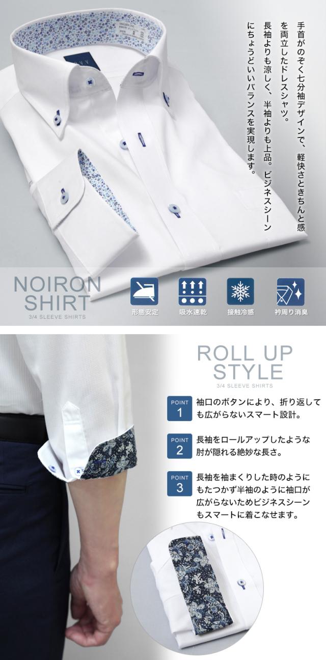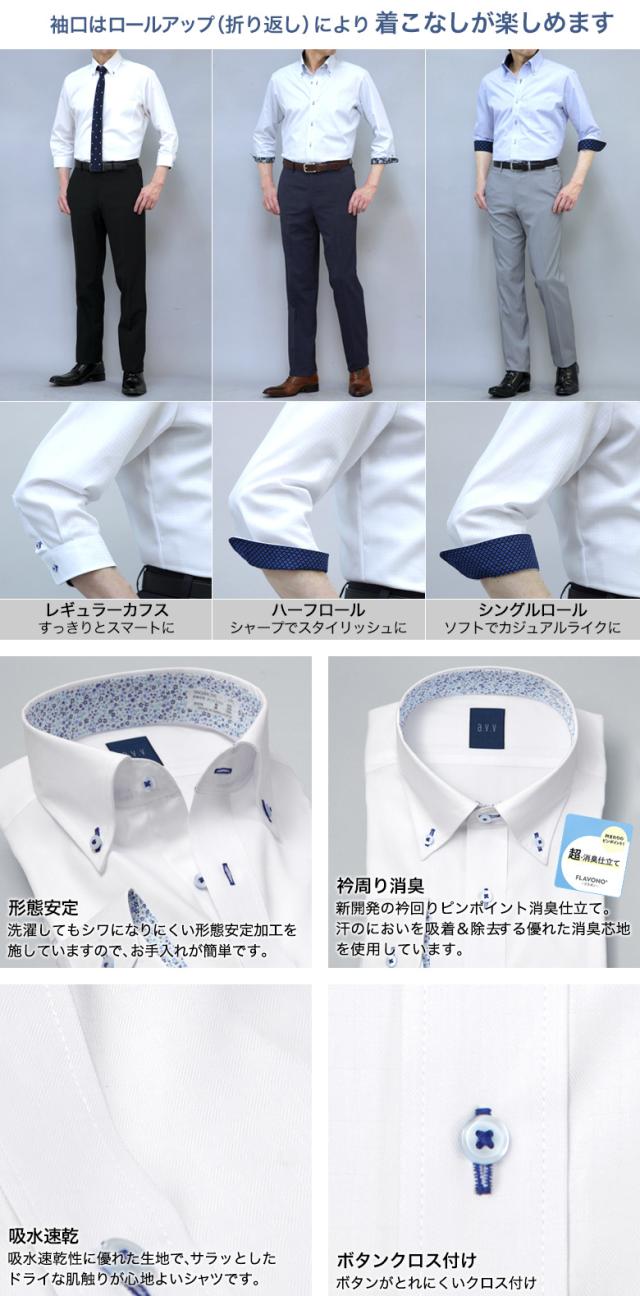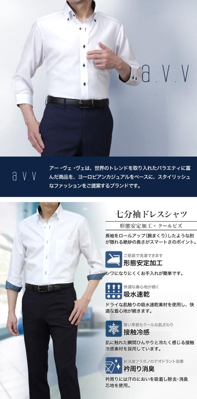 7分袖 ワイシャツ メンズ a.v.v 形態安定 夏 清涼 クールビズ ボタンダウン ドレスシャツ ビジネス カジュアル テレワーク リモートワーク オシャレ 襟裏・袖裏切り替え 半袖 COOL BIZ クールビズ プレゼント ギフト 誕生日