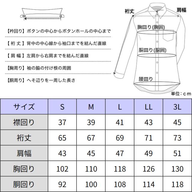 | S(襟37cm-裄65cm) M(襟39cm-裄67cm) L(襟41cm-裄69cm) LL(襟43cm-裄71cm) 3L(襟45cm-裄73cm) |