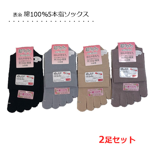 上質 表糸綿100% 5本指ソックス 【2足セット】レディース 日本製 ゆったり 足指さらさら 靴下