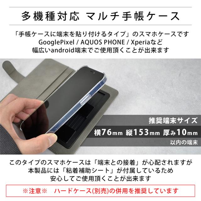 iPhone/Xperia/Galaxy/HUAWEI/Google Pixel/AQUOSなど多数の機種に対応した「貼り付けるタイプの手帳型ケース」です。