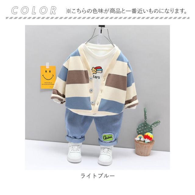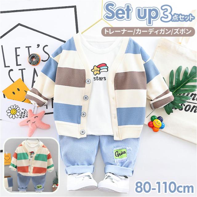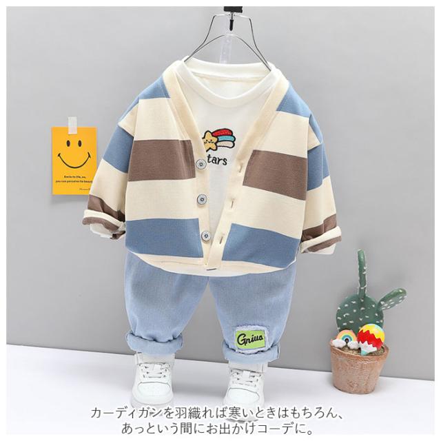 キッズ 幼児服 3点セット カーディガン 通販 ボーダー柄 上下セット セットアップ Tシャツ ズボン 子供服 男の子 ジュニア 洋服 子供 幼児 子ども こども トドラー